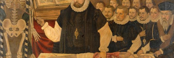 Immagine: John Banester giving the visceral lecture at Barber-Surgeons' Hall, London, in 1581. Oil painting by Jack Orr,1913, after an English painter. Source: Wellcome Collection., CC BY-NC 4.0